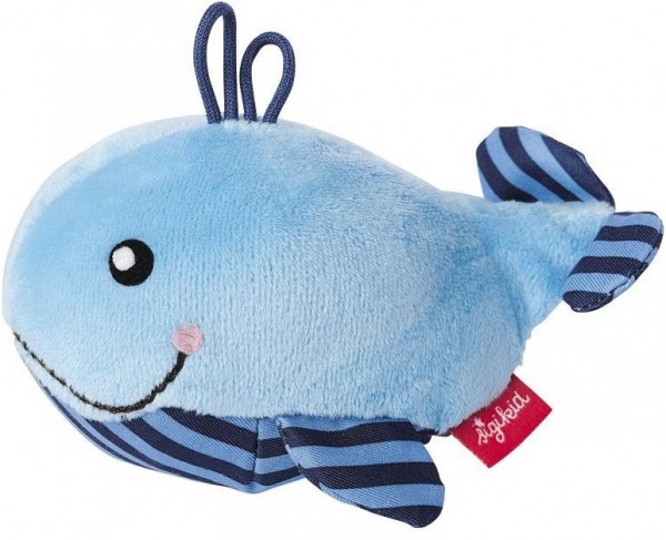 Erste Greifversuche für kleine Wasserratten. Der weiche Greifling Wal bereitet dem kleinen Schatz große Freude. Kleine Hände bekommen den witzigen Spielgefährten gut zu fassen und entlocken ihm sicher schnell ein lustiges Rasselgeräusch.